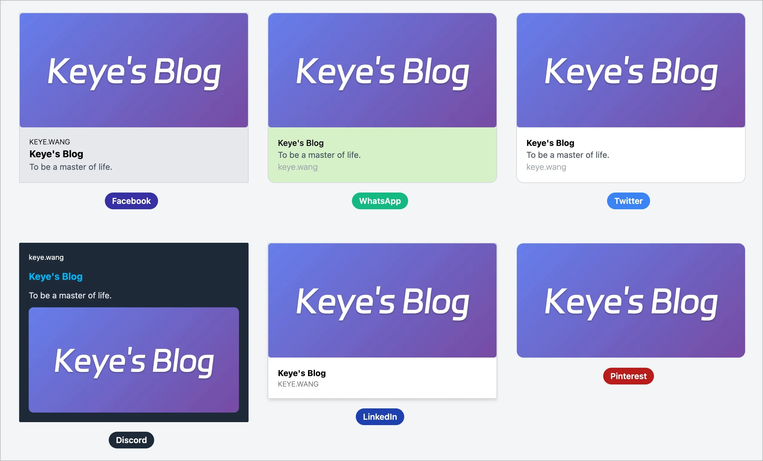 Open Graph Protocol(开放图谱协议),简称 OG 协议。它是 Facebook 在 2010 年 F8 开发者大会公布的一种网页元信息(Meta Information)标记协议,属于 Meta Tag (Meta 标签)的范畴,是一种为社交分享而生的 Meta 标签,用于标准化网页中元数据的使用,使得社交媒体得以以丰富的“图形”对象来表示共享的页面内容。它允许在 Facebook 上,其他网站能像 Facebook 内容一样具有丰富的“图形”对象,进而促进 Facebook 和其他网站之间的集成。